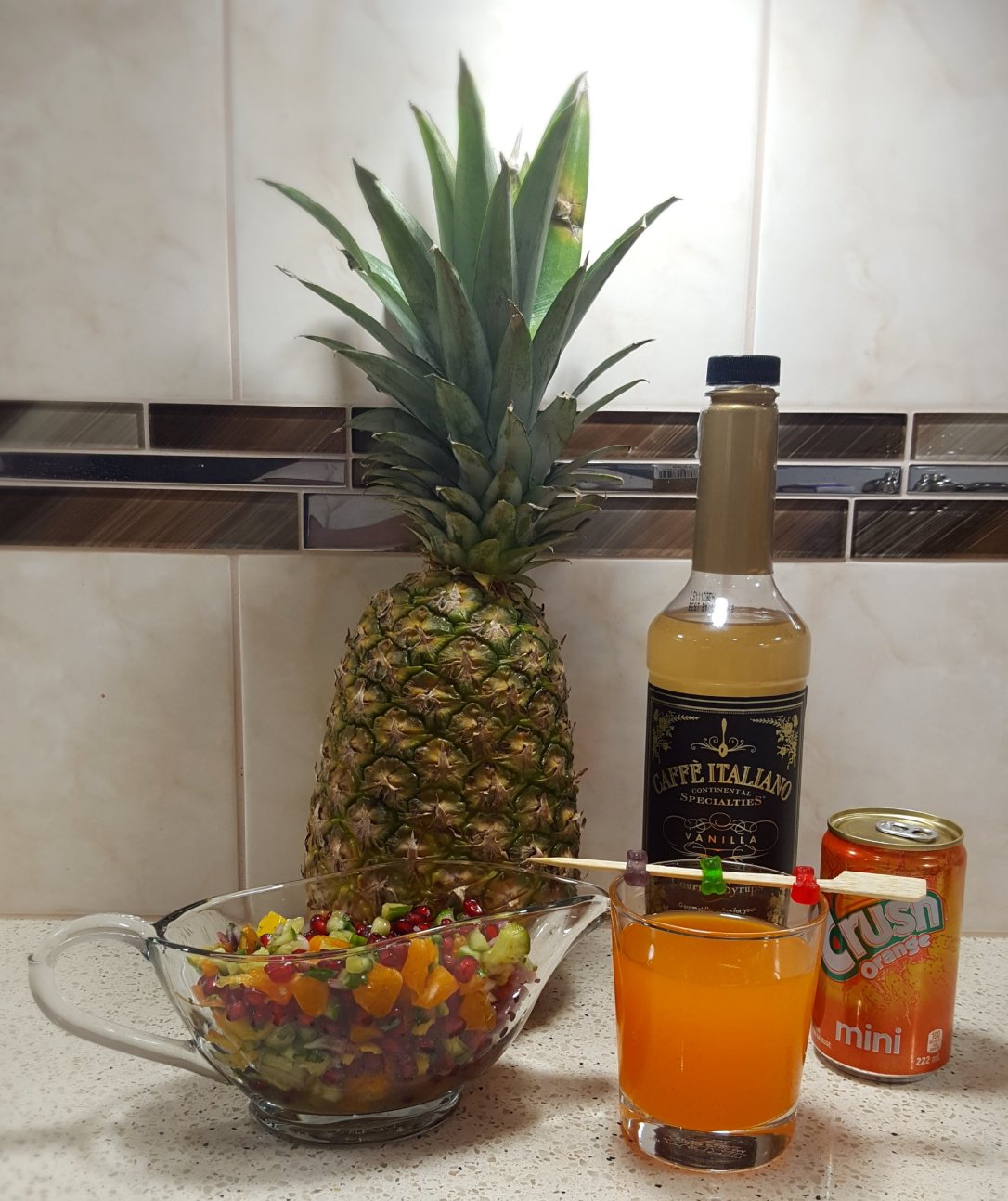 1. Mix the pineapple juice, vanilla syrup and ice in the cocktail mixer and shake well.