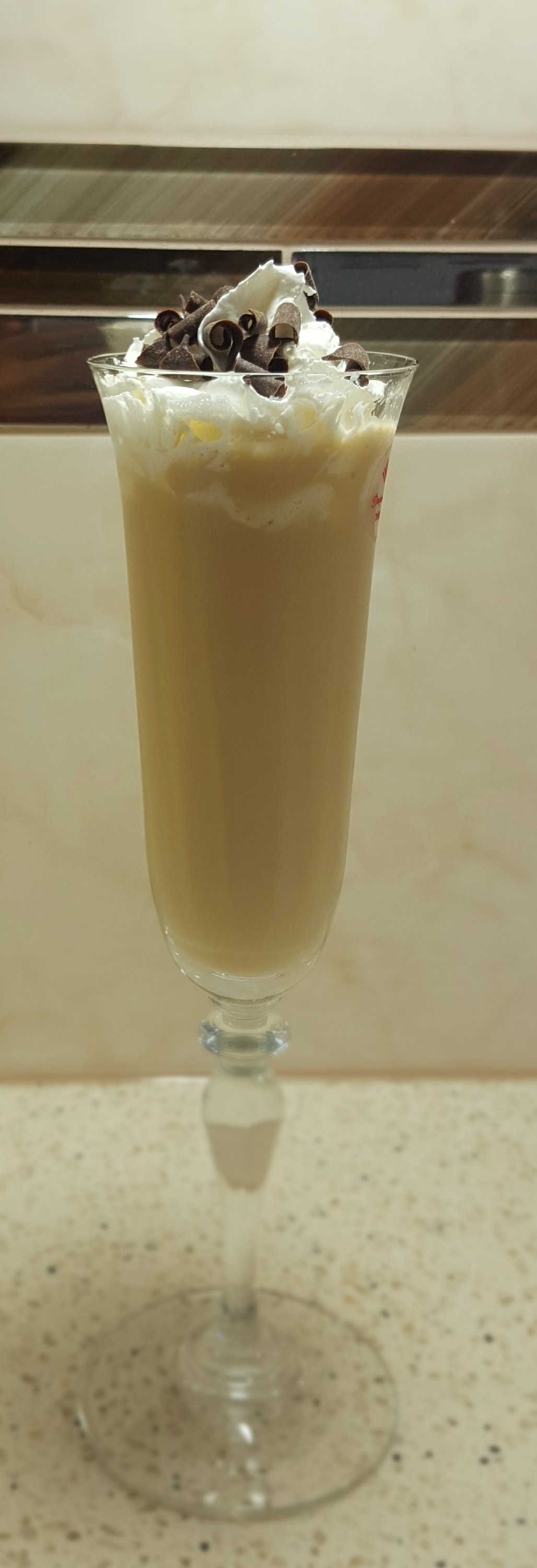 2. Pour it in a long glass and add whipping cream on top.