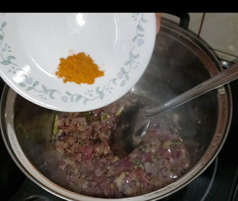 Now add turmeric powder & curry leaves and stir