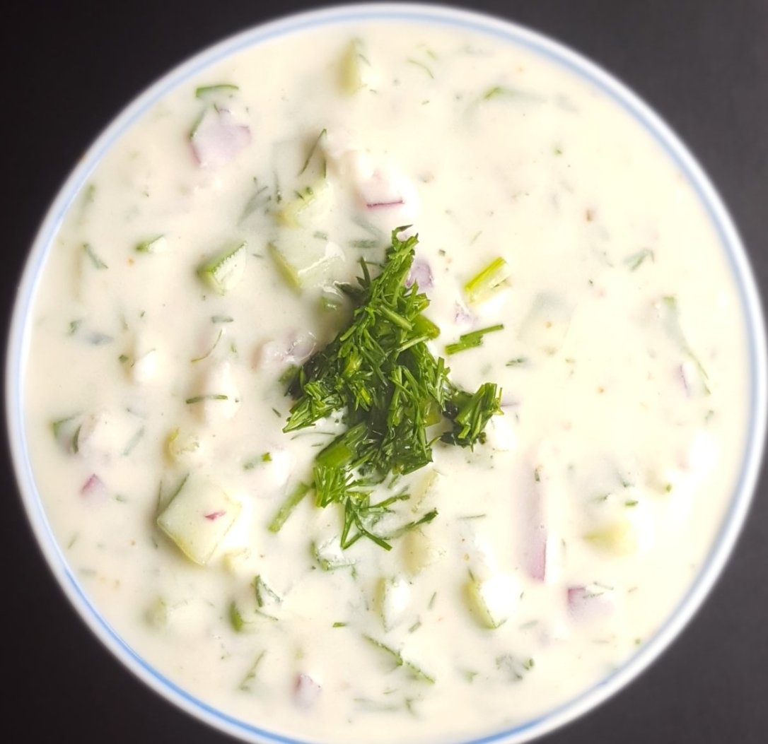 The dilli raita is ready to be served. You can serve it with Saffron Rice or Biryani